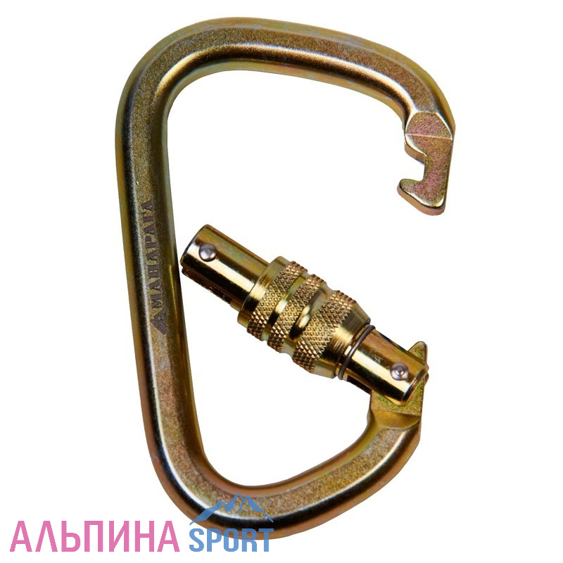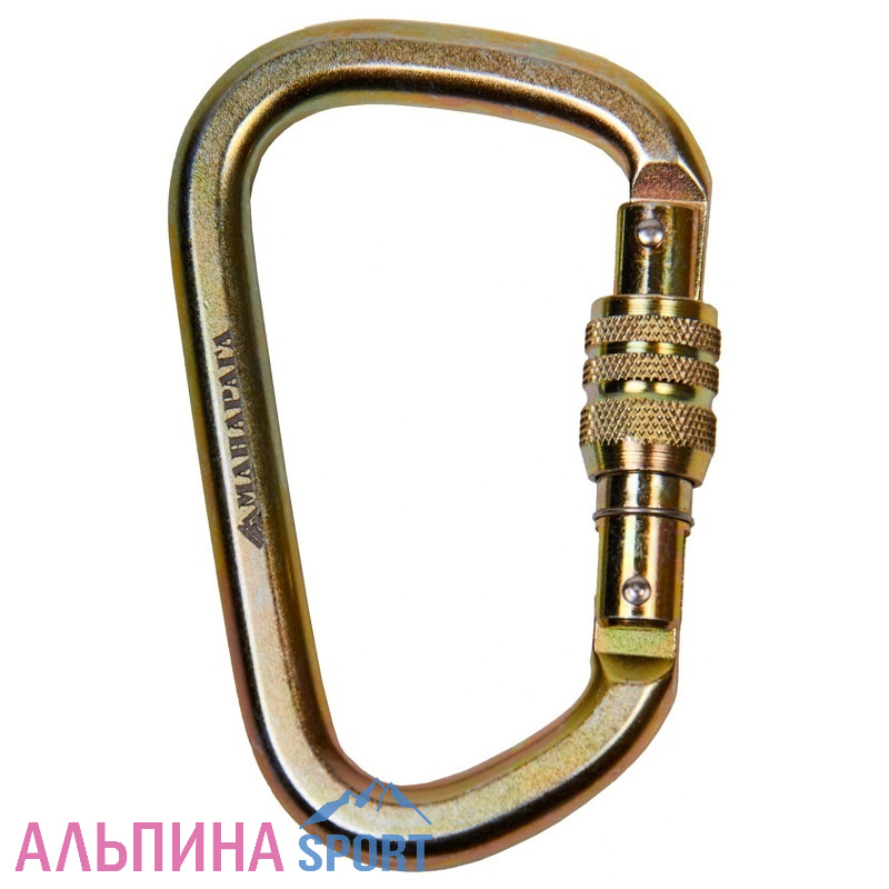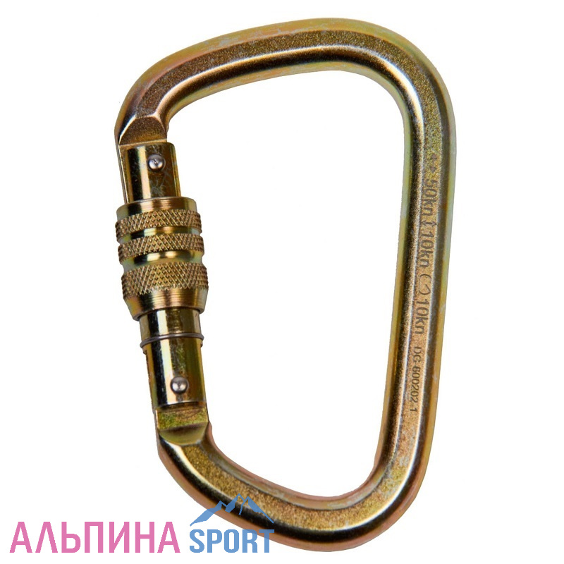 Стальной карабин D-образной формы, с винтовой муфтой, защелкой в виде крючка из легированной стали.