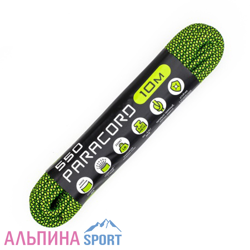 Паракорд 550 CORD nylon 4,0мм ярко-зеленый-черный (змея)