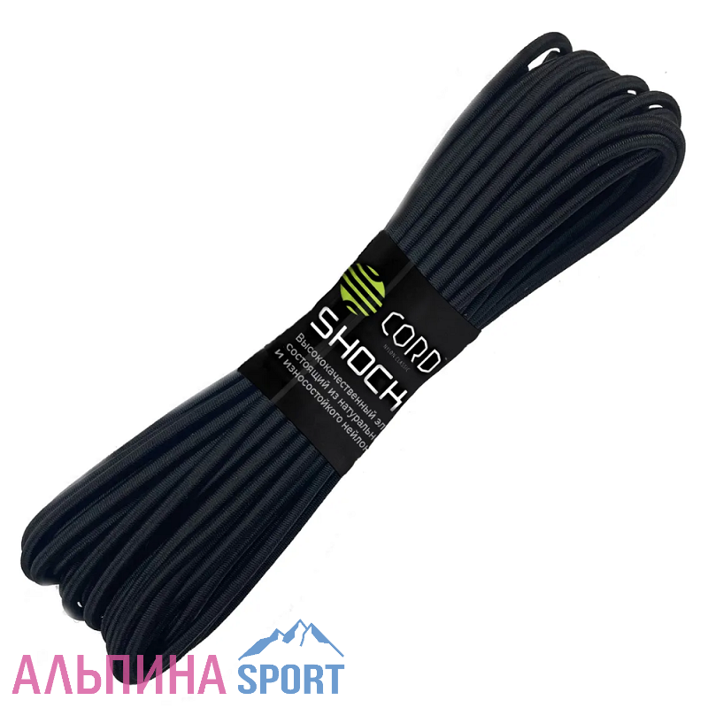 Shock cord - высококачественный эластичный шнур, состоящий из 2-х материалов: латекса (сердечник, 12 нитей) и нейлона (оболочка, 16 нитей).