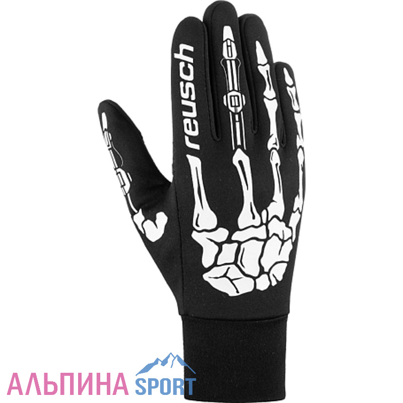 Перчатки REUSCH Ashton Touch-Tec Junior - стильная детская модель, декорированная оригинальным принтом с изображением костей. Эластичный флисовый материал обеспечивает тепло и гибкость, силиконовый принт на ладони гарантирует лучший захват, а вставки Touch-Tec позволяют использовать мобильные устройства даже в перчатках.