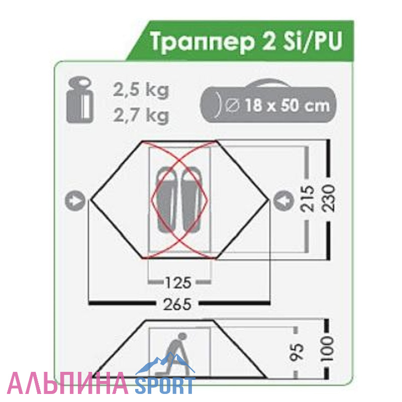 Палатка Траппер 2 предназначена для трекинга, велотуризма, каякинга, а также для всех любителей активного отдыха. Благодаря внешнему каркасу сначала устанавливается тент, а затем к нему подвешивается внутренняя палатка.