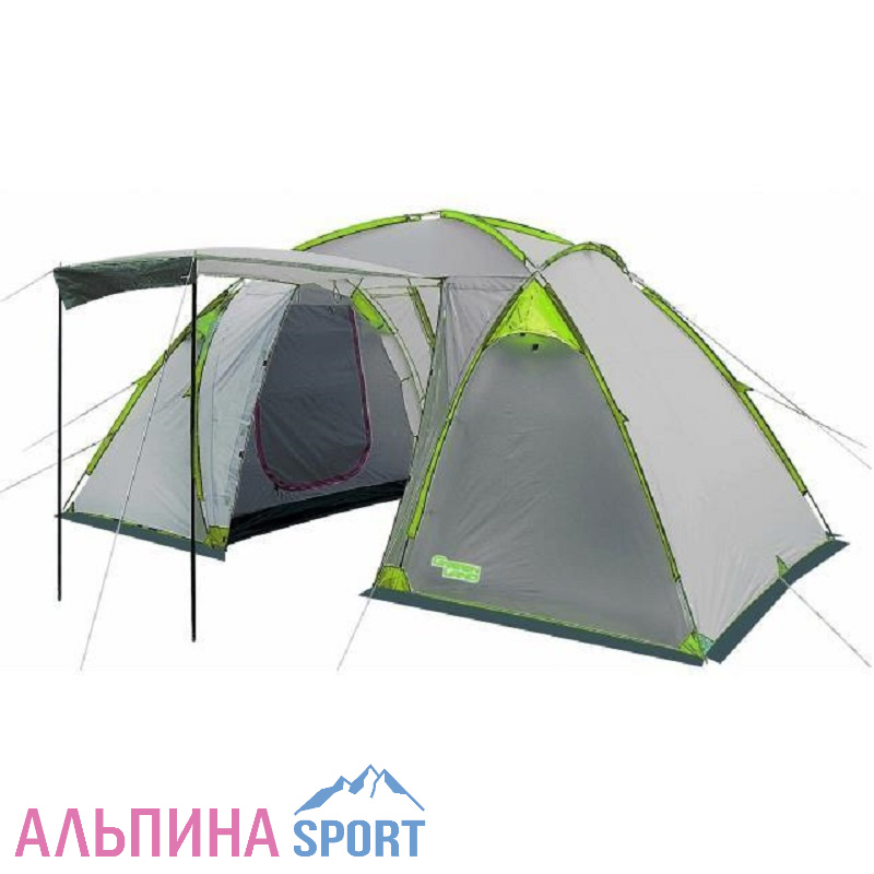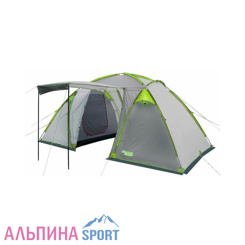 Четырехместная двухкомнатная кемпинговая палатка с большим тамбуром посередине. В тамбуре можно стоять в полный рост.