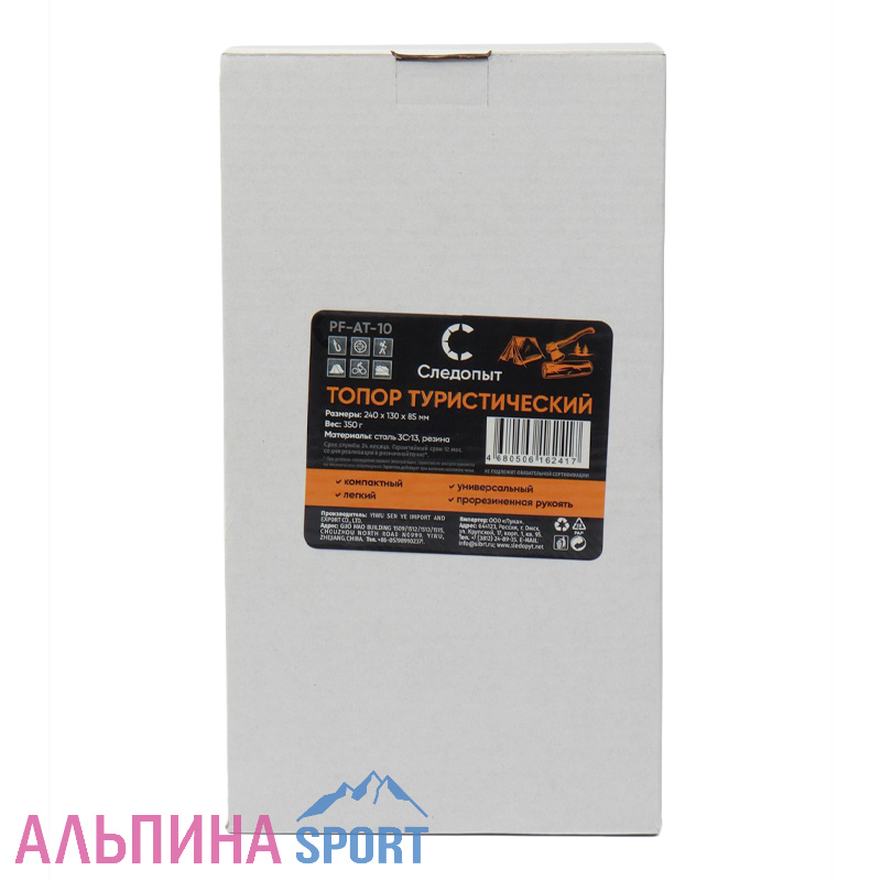 Топор туристический "СЛЕДОПЫТ" 240*130*85 мм 350 гр. прорезиненная ручка, в чехле