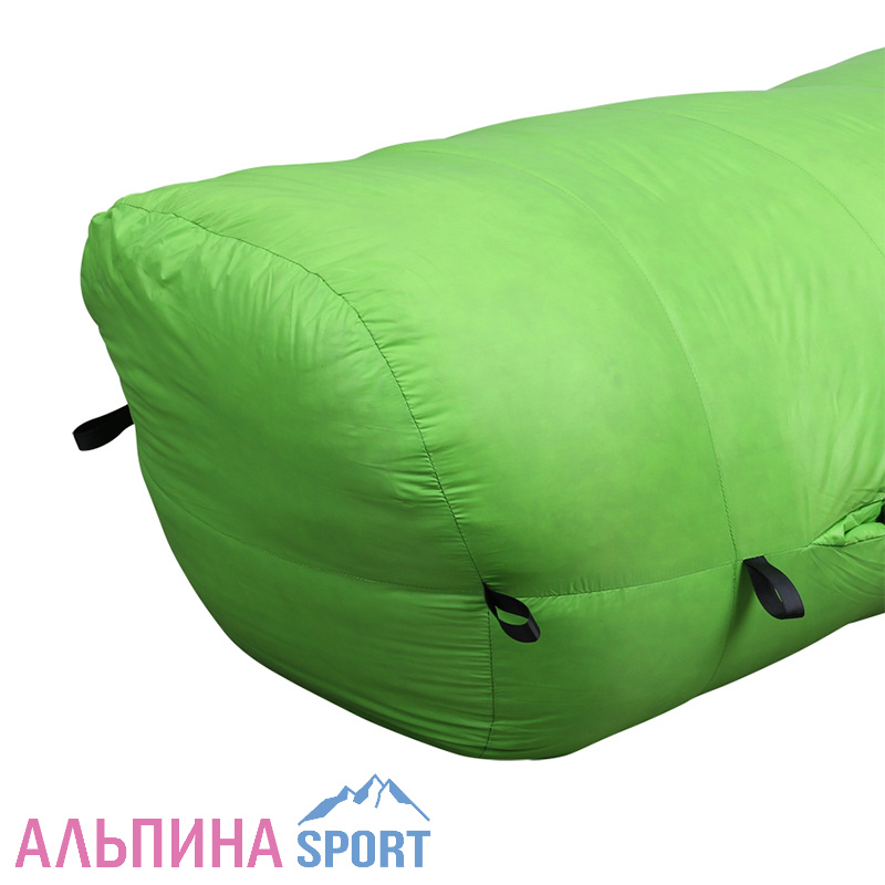 - Спальник рассчитан на температурный диапазон: комфорт −1… −7 °С и экстрим -24 °С, он долговечнее мешков с синтетическими утеплителями, а компрессионные свойства пуха, которые не смог превзойти еще ни один из известных утеплителей, позволяют добиться минимального размера спальника в упаковке.