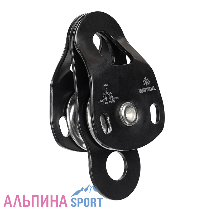 Блок-ролик двойной силовой - предназначен для подъема тяжелых грузов и организации полиспастов. В блоке используется два независимых ролика большого диаметра смонтированных на одной оси и установленных на закрытых шарикоподшипниках. Возможно присоединение трех карабинов одновременно. Имеет третью разделительную щеку с нижним отверстием под карабин. Работает с веревкой и с тросом диаметром до 14 мм.
