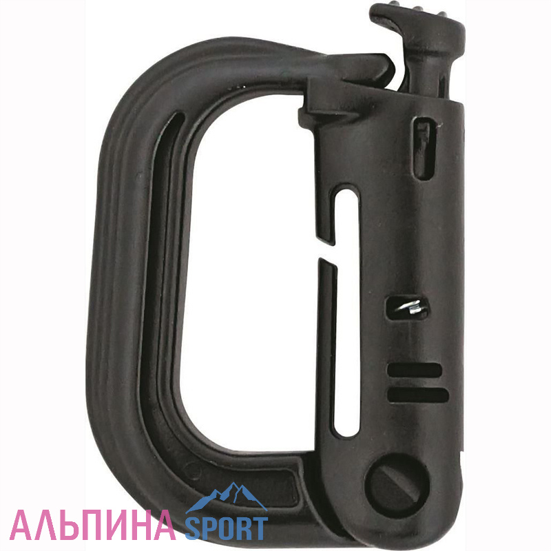 Для автоматического защелкивания замка в конструкции карабина используется пружина. Имеется крепление для установки карабина на стропу или систему Molle.