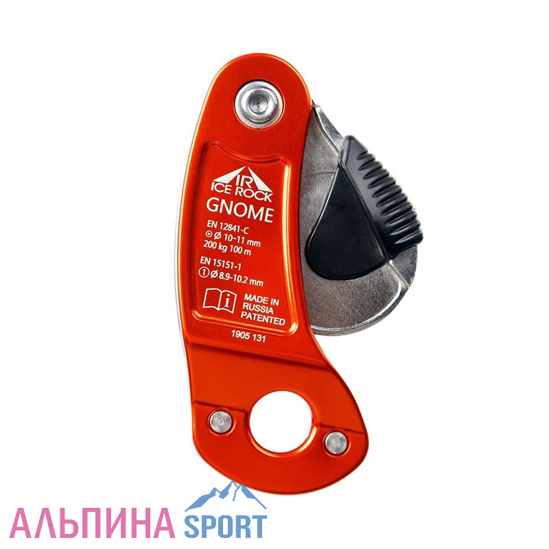 GNOME - инновационное самоблокирующееся страховочно-спусковое устройство с запатентованой системой адаптации к диаметру верёвки и весу пользователя - предназначен для спуска и страховки на одинарной веревке. Основное преимущество заключается в приложении минимального усилия на ручку для разблокировки даже при максимальных нагрузках.