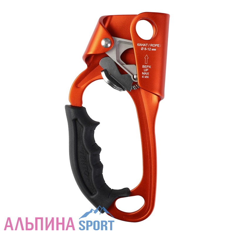 Зажим под левую руку предназначен для подъема по вертикальным или наклонным перилам, а также применяется при проведении спасательных работ. Соответствует EN 567 и ГОСТ EN 12841-2014 для использования в системах канатного доступа. Жумар совместим со статическими (ГОСТ EN 1891-2014) и динамическими (EN 892) веревками.