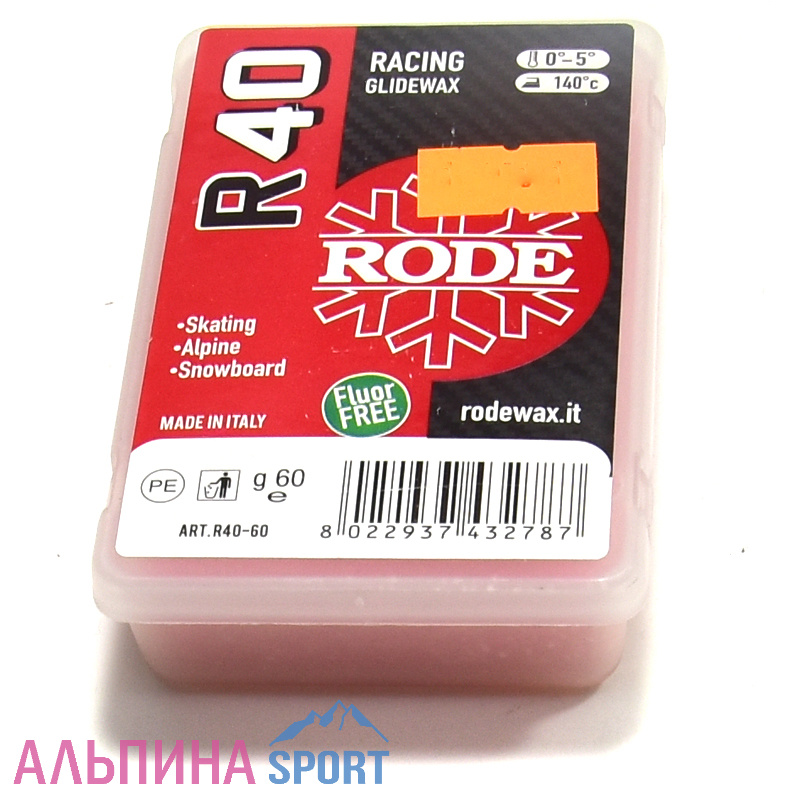 Парафин Rode R40 Red на основе углеводородов. Подходит для всех типов снега в своем температурном диапазоне.