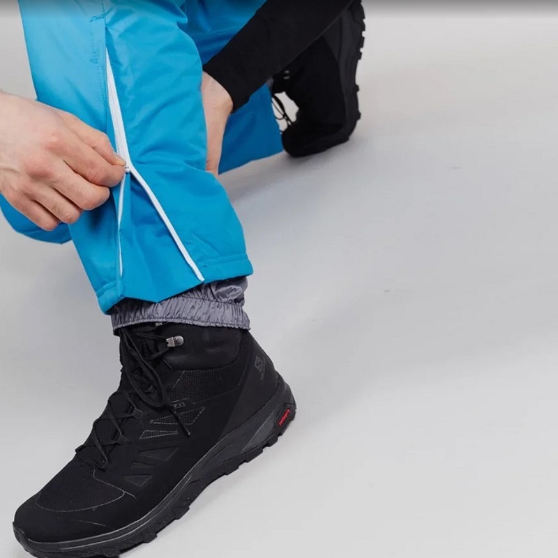 - Дополнительно: снегозащитные гетры, отстегивающиеся бретели, боковые молнии внизу штанин;