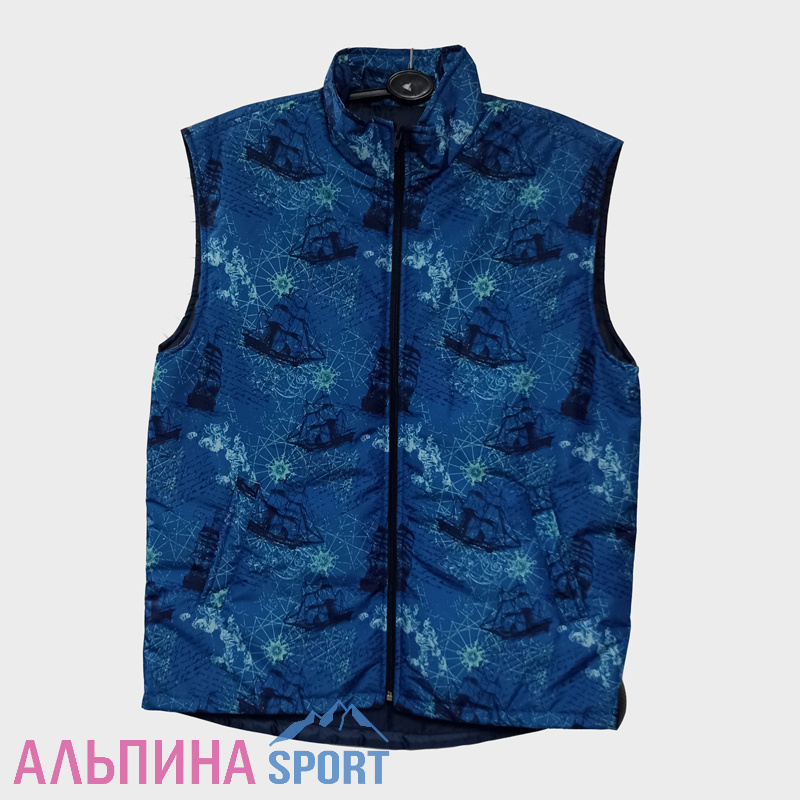 Жилет утепленный с центральной застежкой-молнией. Воротник-стойка. Два боковых кармана.