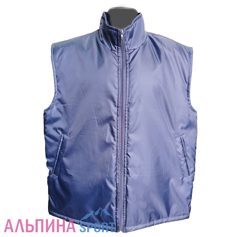 Жилет утепленный с центральной застежкой-молнией. Воротник-стойка. Два боковых кармана.