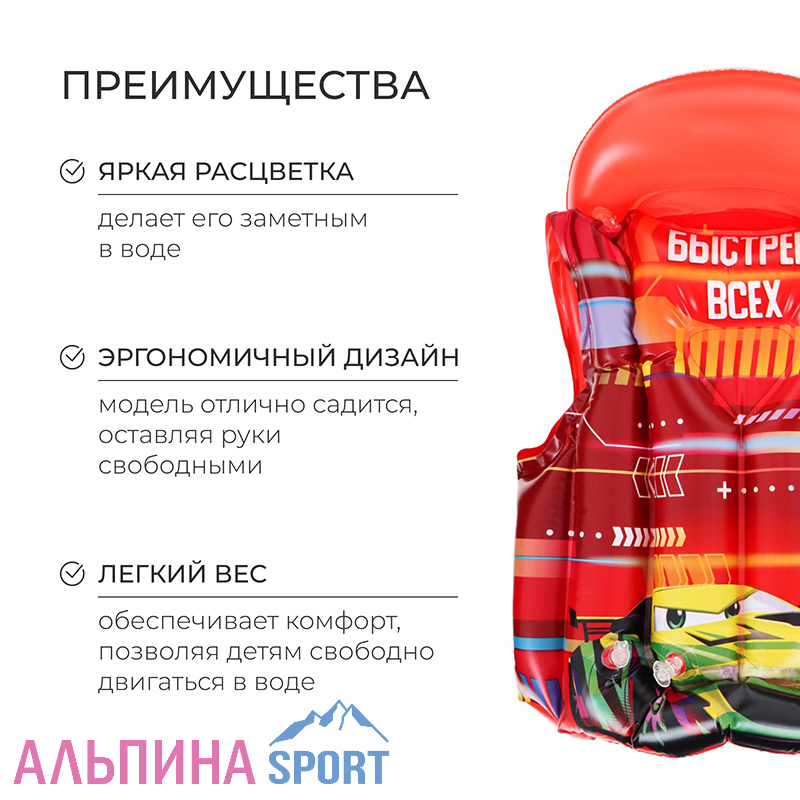 Надувной жилет подойдёт детям, которые ещё не умеют плавать или только начали. Он поможет научиться сохранять правильное положение тела в воде и чувствовать себя уверенно.