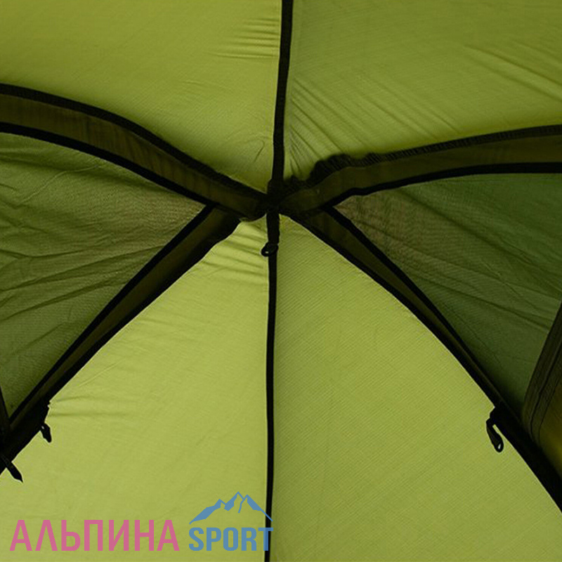 Четырёхместная палатка от «Tramp», рассчитанная на сложные экспедиции и походы. Модель имеет просторный спальный отсек в форме полусферы с радиусом 1,4 м, рассчитанный на 4 человек. Внешний тент, сделанный из плотной ткани, защищит вас от снега, дождя или ветра. В качестве дополнительного барьера по нижнему краю навеса пришита специальная юбка, а все швы проклеены термоусадочной лентой. Материал не выцветает и не меняет характеристик при длительном нахождении на солнце, так что палатку можно спокойно ставить на открытой местности. Кроме того специальная пропитка тента, которой он полностью обработан, повышает его огнестойкость.