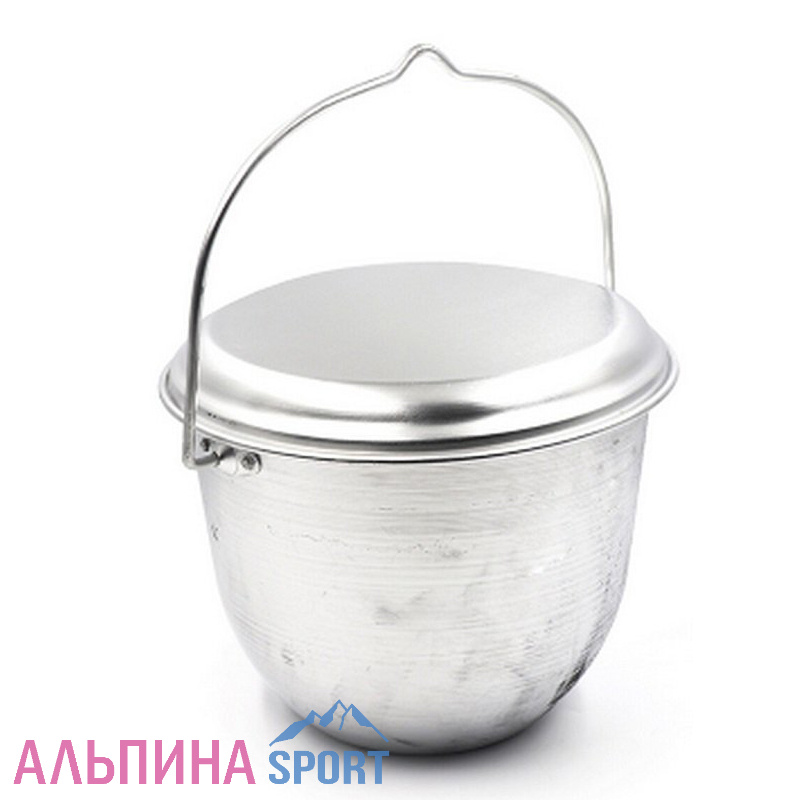 Котелок костровой от бренда Следопыт выполнен из пищевого алюминия, имеет объём 4,5 литра и обладает удобной в применении круглой ручкой с петелькой для подвешивания.