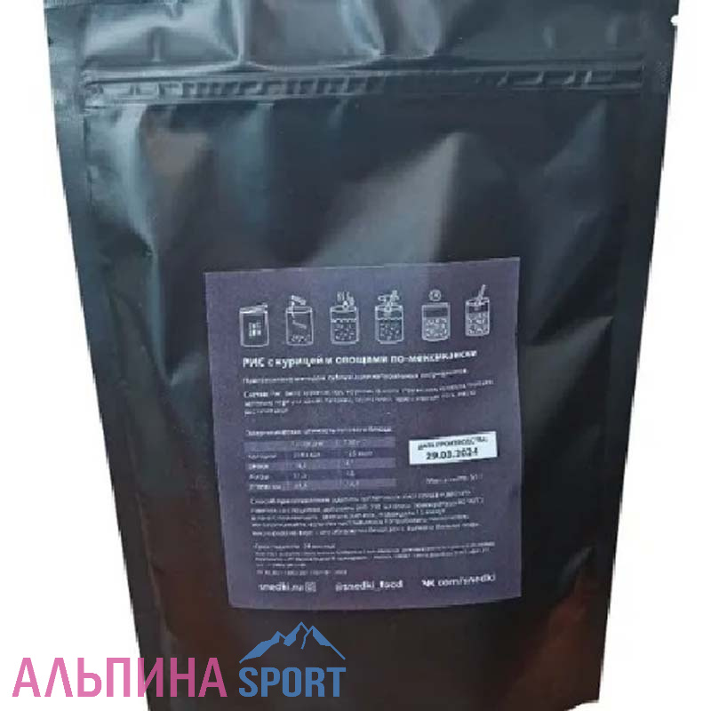 Способ приготовления: удалить поглотитель кислорода и достать пакетик со специями, добавить 190-200мл. горячей воды (температура 80-90С) в пакет, перемешать содержимое, закрыть на застежку, подождать 15-20 минут.Ваше блюдо готово!