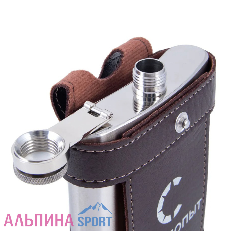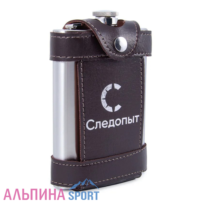 Фляжка в кожаном чехле с тиснением Следопыт Flage 270 мл, коричневая - долговечная и практичная модель для использования в походах.