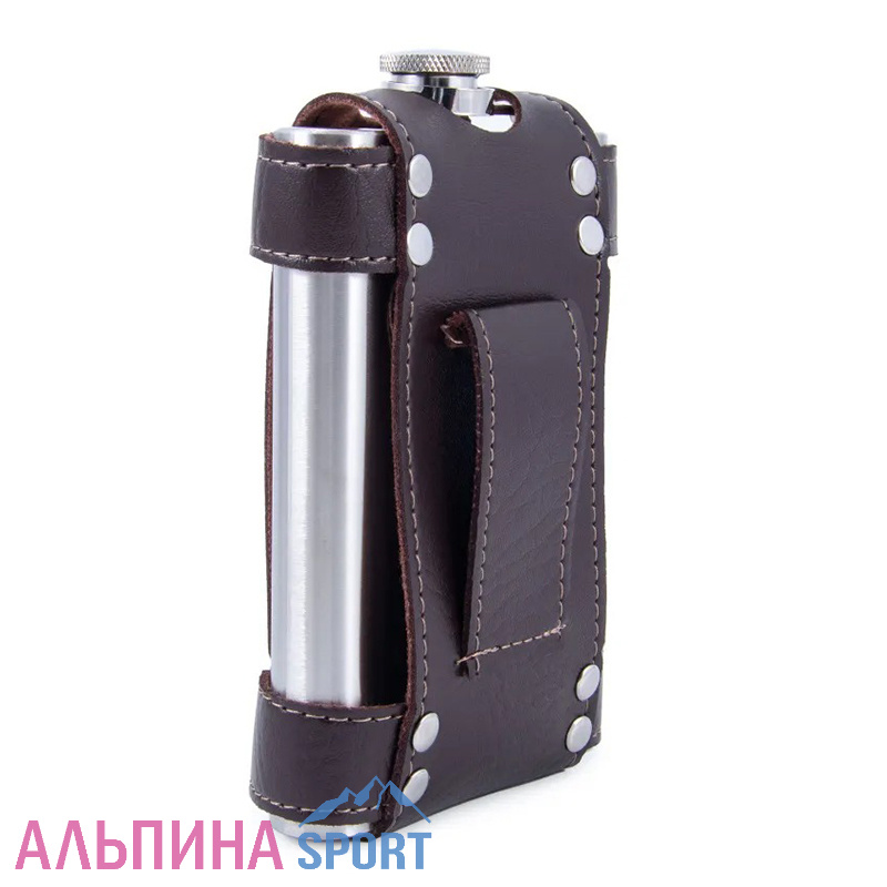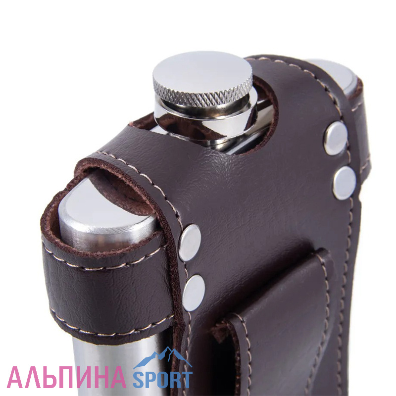 Кожаный чехол обеспечивает хорошее сцепление, поэтому фляга не выскользнет из рук. -