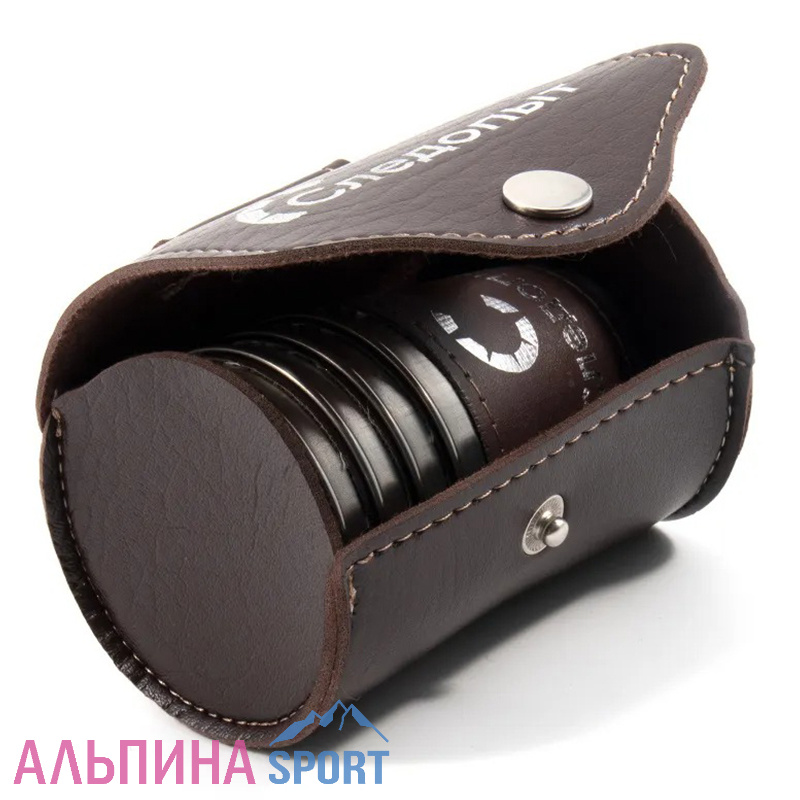 Рюмка «СЛЕДОПЫТ» 60 мл, в кожаной тубе, рюмки в дополнительном кожаном оплете