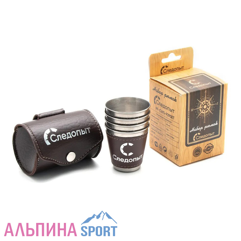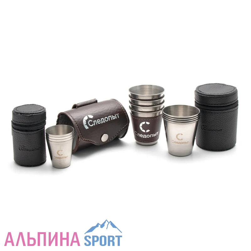 Рюмка-стопка «СЛЕДОПЫТ» 60 мл в кожаной тубе рюмки в доп. кожаном оплете (4 шт.)